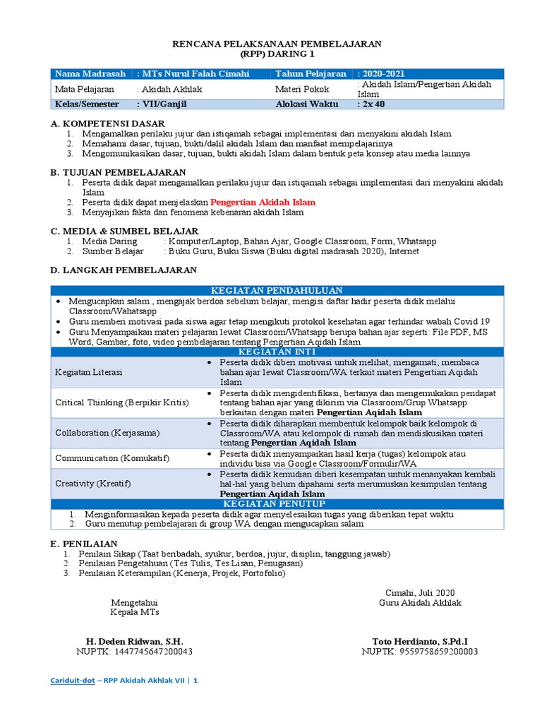 Jual Rpp 1 Lembar Sd Pendidikan Agama Islam Kelas 1 6 Semester 1 2 K 13 Jakarta Barat Naddar Tokopedia from images.tokopedia.net Jadi sesuai surat edaran nomor 14 tahun 2019 yang menyatakan bahwa rpp 1 lembar kelas 1,2,3,4,5,6 dibuat menjadi lebih ringkas yaitu hanya butuh 1 lembar atau satu halaman saja untuk sebuah rencana pelaksanaan pembelajaran kurikulum 2013, tapi walaupun begitu tetap terintegrasi dengan literasi abad 21, hots, ppk dan 4c. Sumber belajar dan media pembelajaran buku paket fikih kelas vii lks lembar penilaian lembar observasi contoh lembaran do'a dan dzikir h. Rpp daring satu lembar kelas 2 tema 1 st 3. .rpp 1 lembar untuk mata pelajaran bahasa indonesia kelas viii. 2 x 40 menit (1 kali pertemuan) a. Rpp daring satu lembar kelas 2 tema 2 st 1 Daftar isi cd rpp kurikulum 2013 cover salinan permendikbud no. Contoh rpp 1 lembar kelas 8 smp/mts semester 1 dan 2 kurikulum 2013 revisi terbaru.
